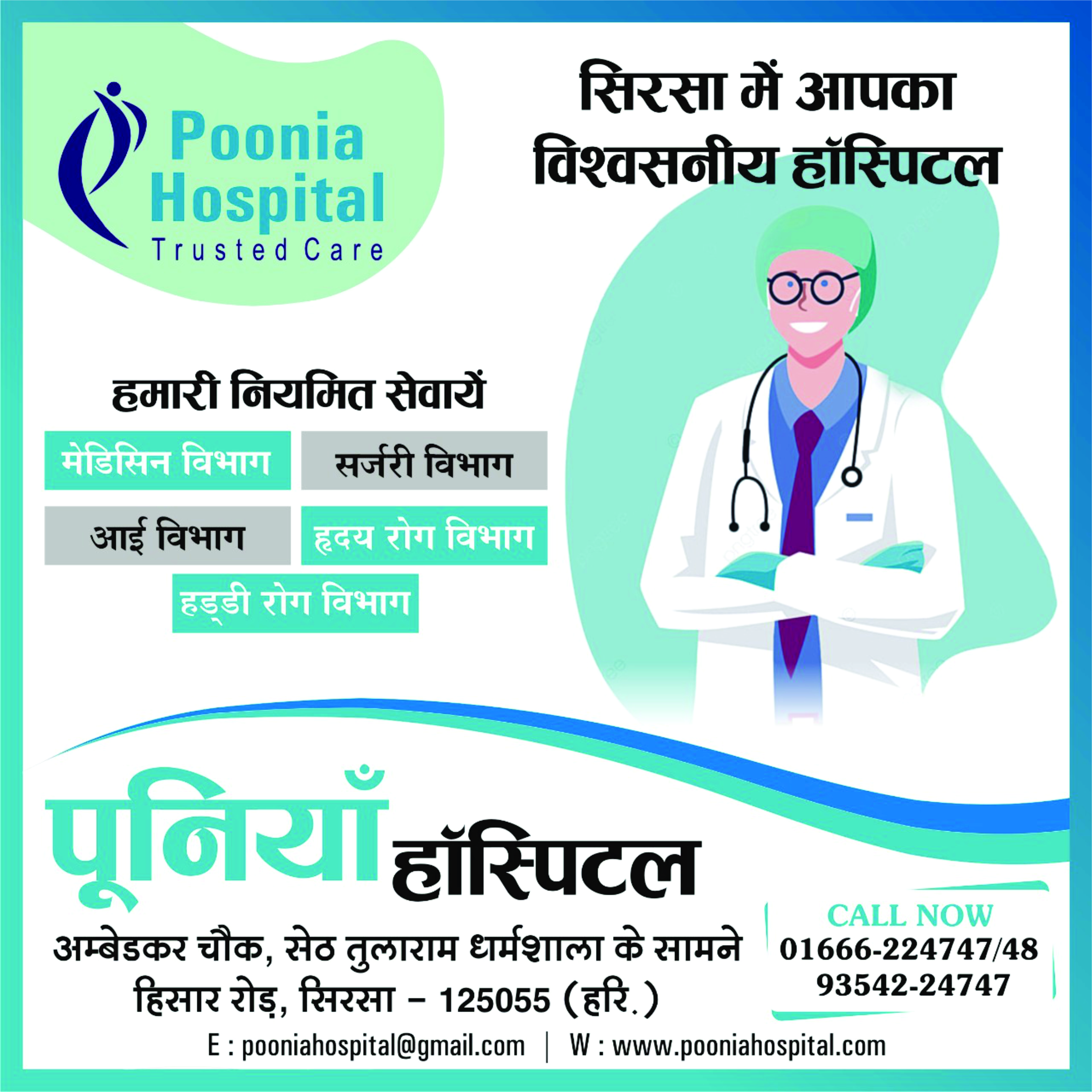 When you choose Poonia Hospital for your care, you can be confident in your choice. We believe every patient deserves excellent care, respect and compassion. It's the way you should be treated.